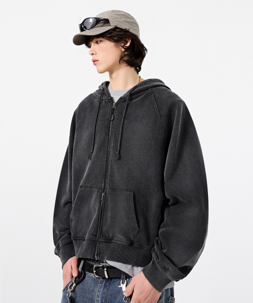 [크롭선택] ASI 포시즌 에센셜 후드 집업_피그먼트 차콜