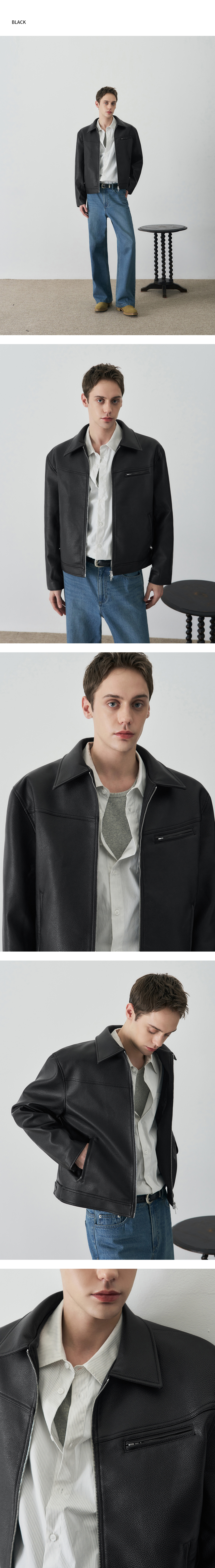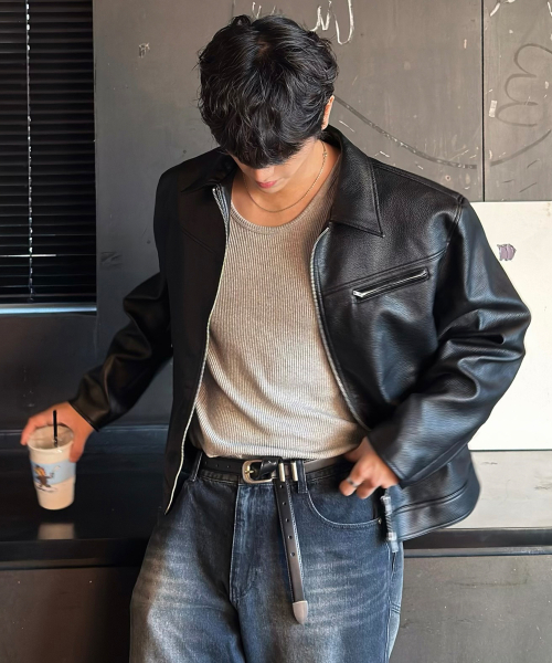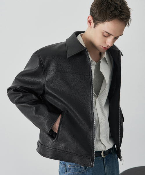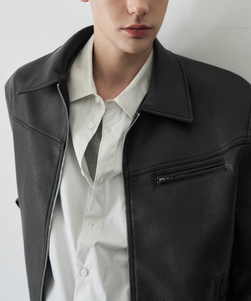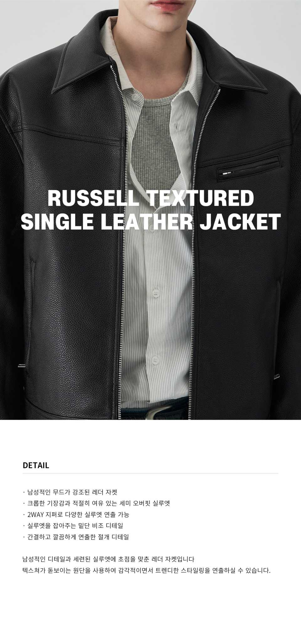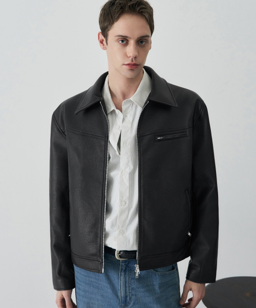 러셀 텍스쳐드 싱글 레더 자켓 [BLACK]