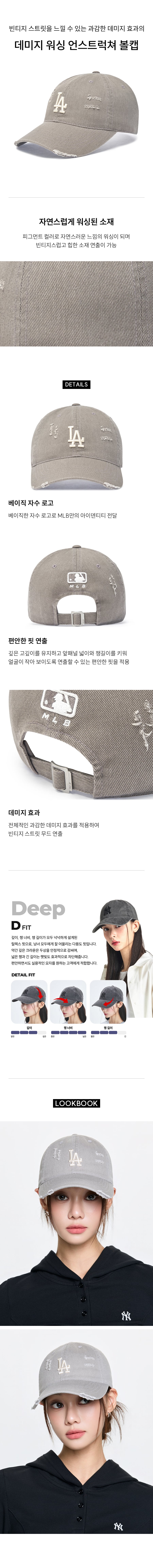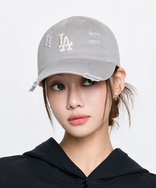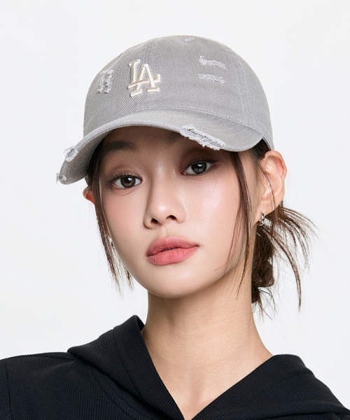 데미지 워싱 언스트럭쳐 볼캡 LA (Grey)