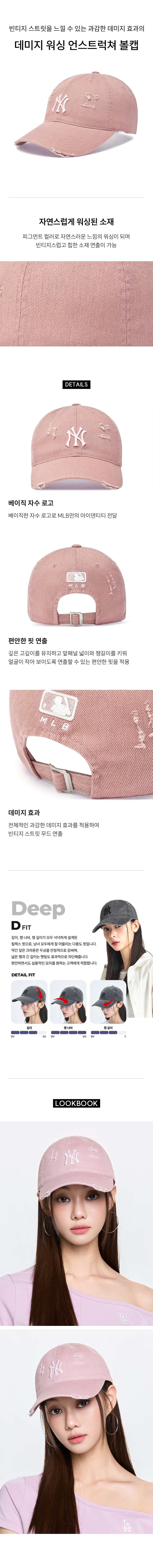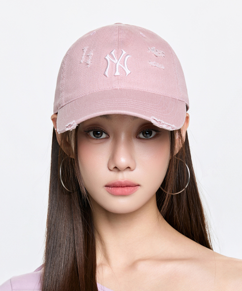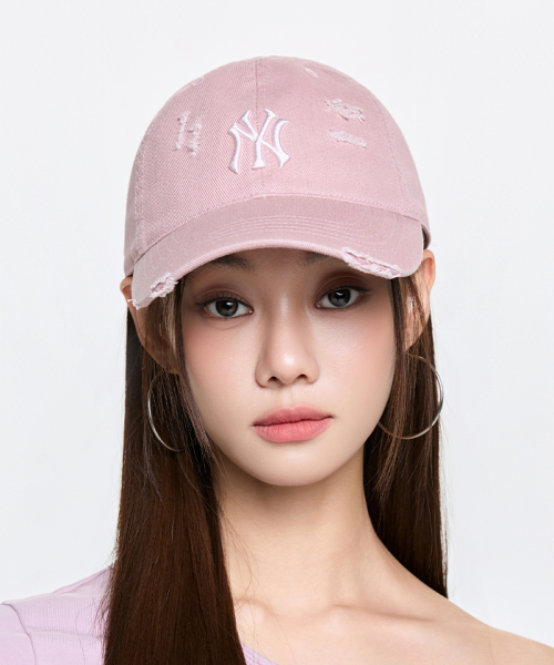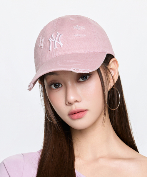 데미지 워싱 언스트럭쳐 볼캡 NY (Mg.Pink)