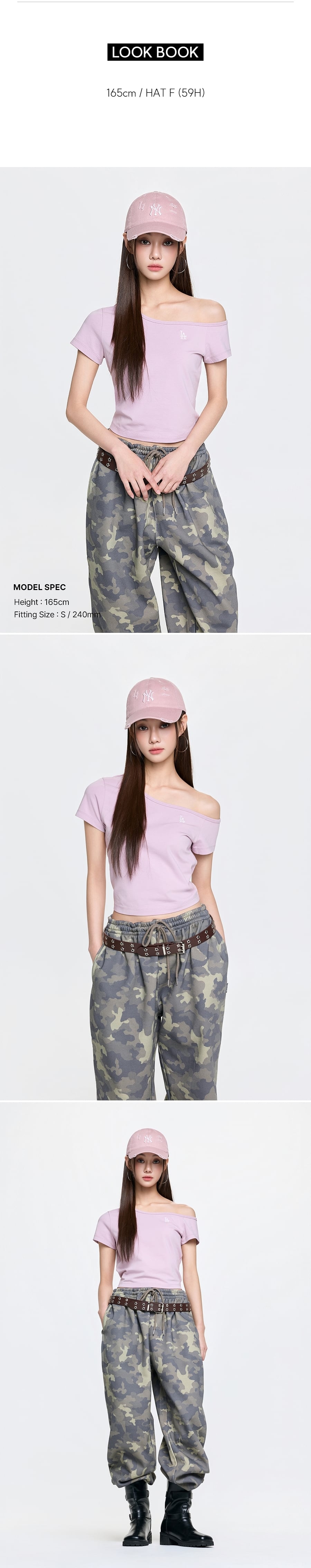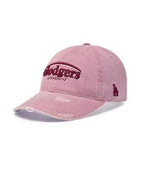 [카리나 착용] 빈티지 데미지 커브 로고 언스트럭쳐 볼캡 LA (Pink)