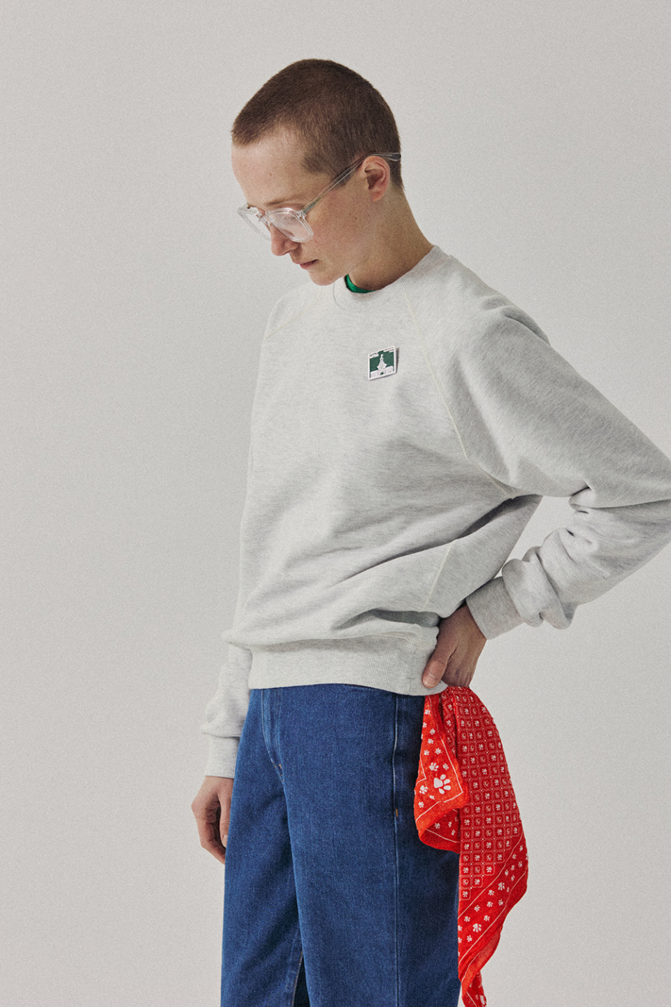 ※ 모델이 착용한 스웻셔츠 내 가슴 뱃지는 연출용 소품으로, 상품 구성에 포함되지 않습니다.
