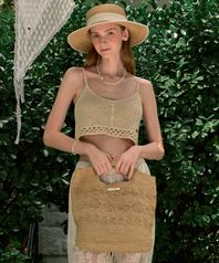 Gold Label Point Raffia Tote Bag - Beige