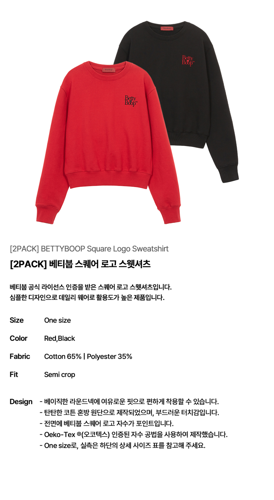 [2PACK] 베티붑 스퀘어 로고 스웻셔츠