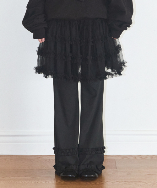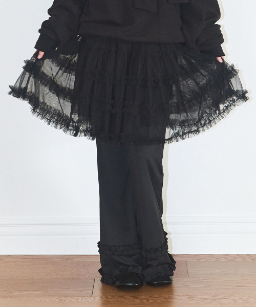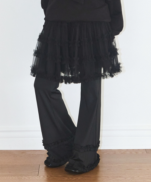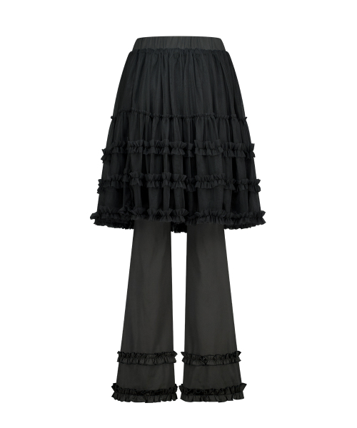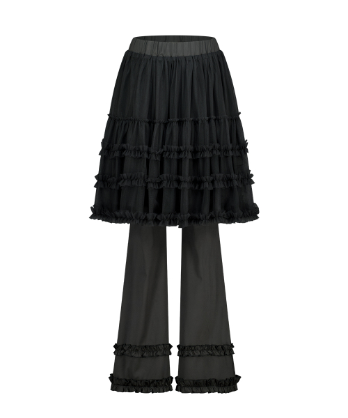 플레어 러플 레이어드 스커트 팬츠 블랙