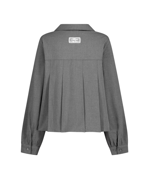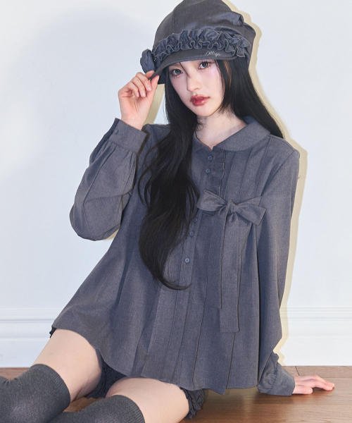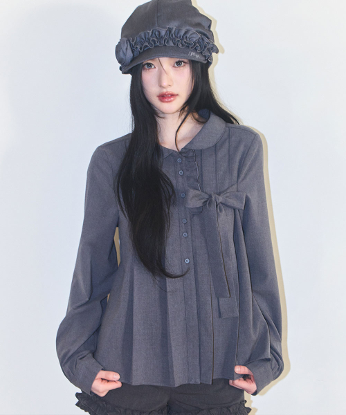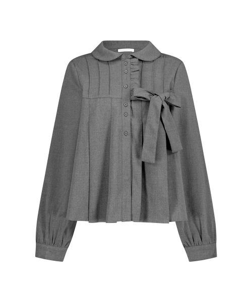 리본 플리츠 블라우스 그레이
