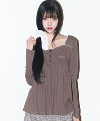 플레어 셔링 롱슬리브 브라운