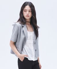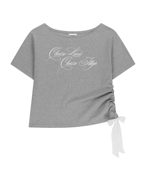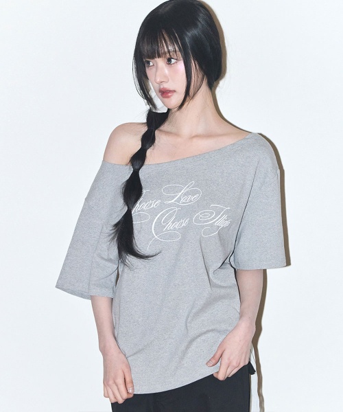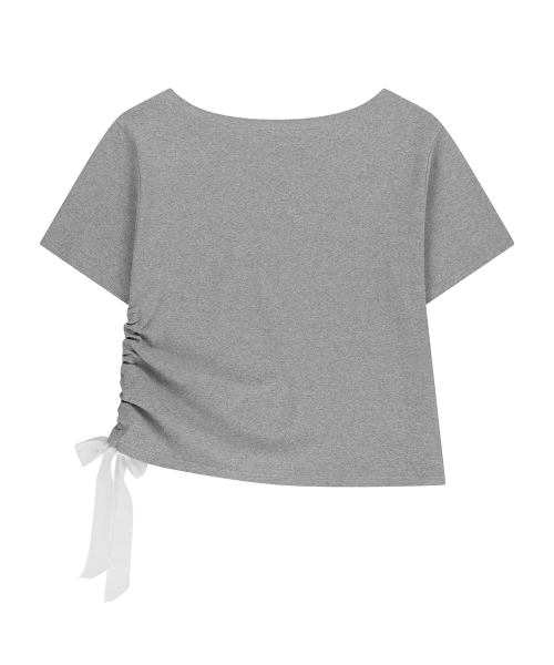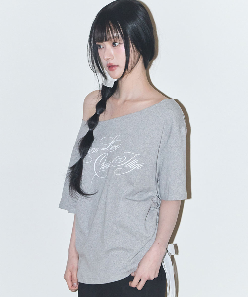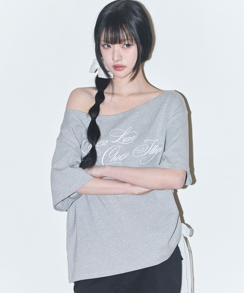시어 리본 오프숄더 탑 멜란지