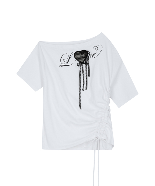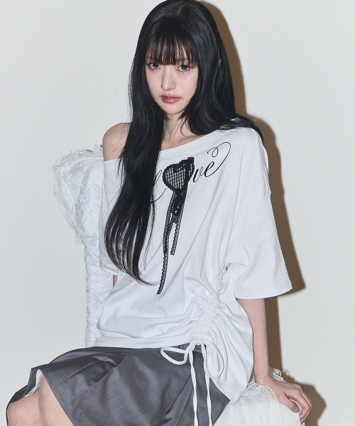 러브 원숄더 오버핏 티셔츠 화이트