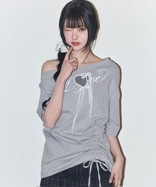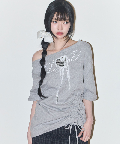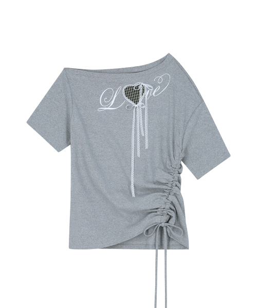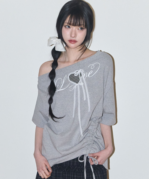 러브 원숄더 오버핏 티셔츠 멜란지