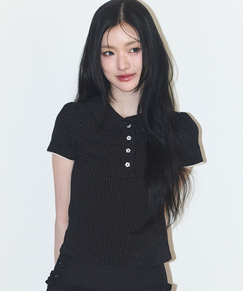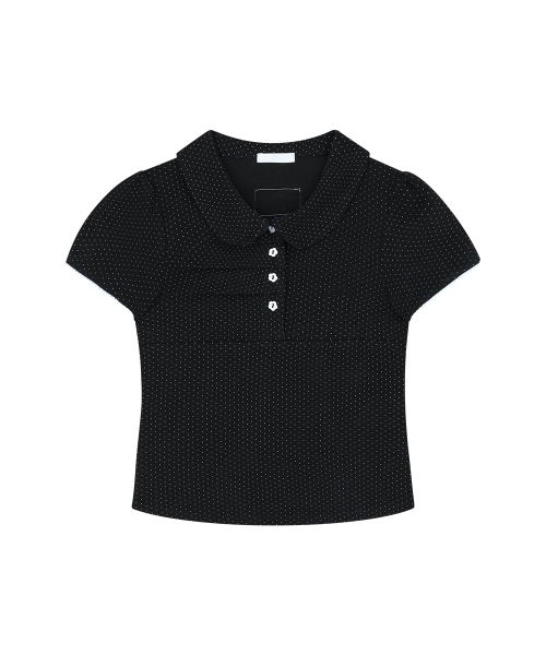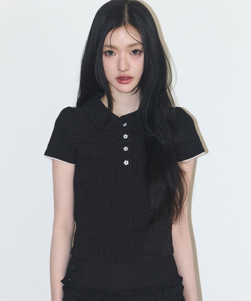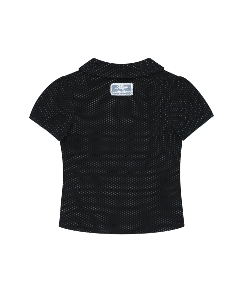 도트 핀턱 카라 티 블랙