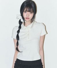 도트 핀턱 카라 티 아이보리