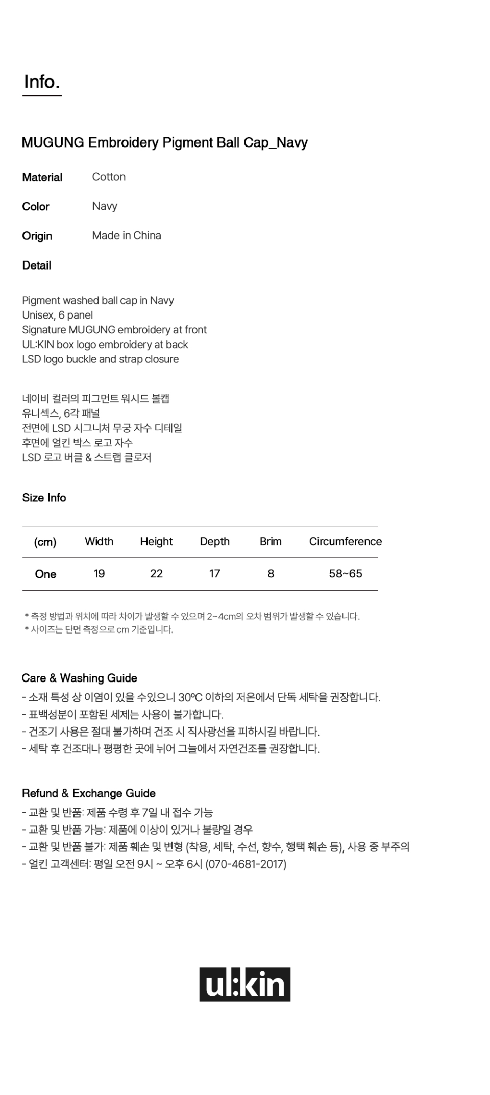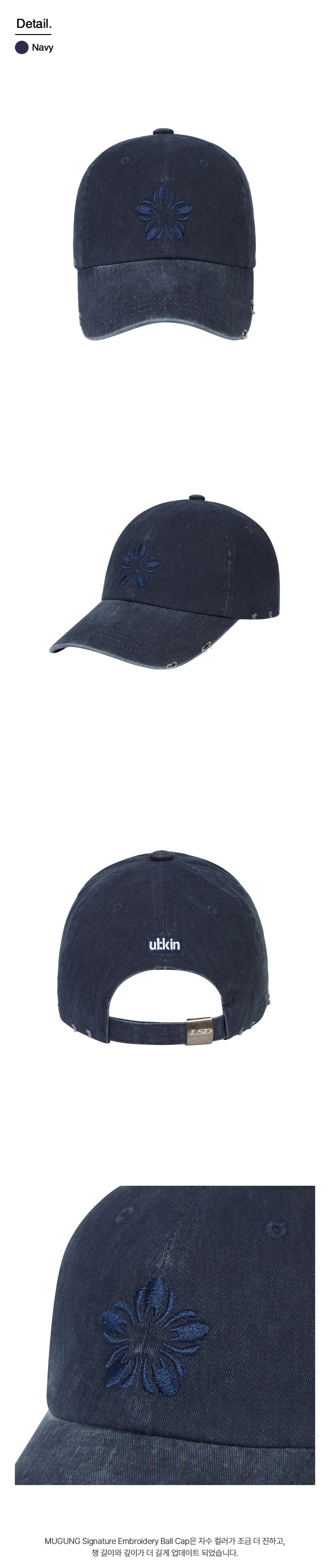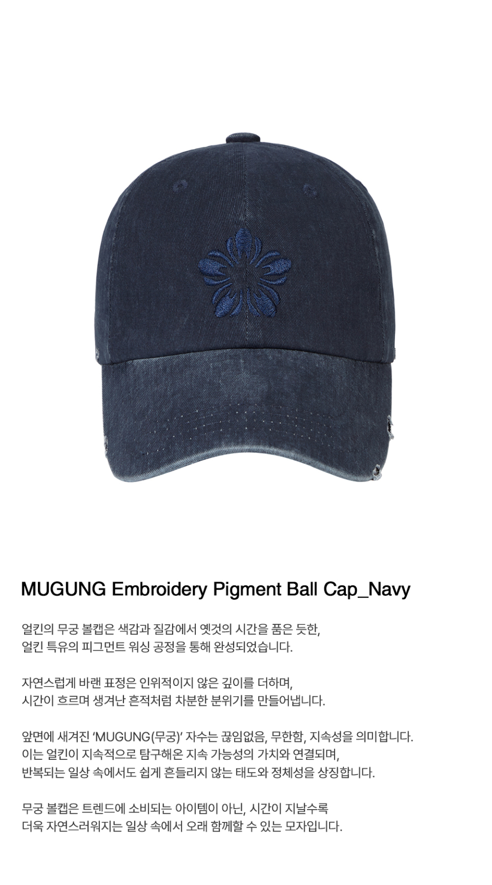 [런웨이] 무궁 자수 피그먼트 볼캡_네이비