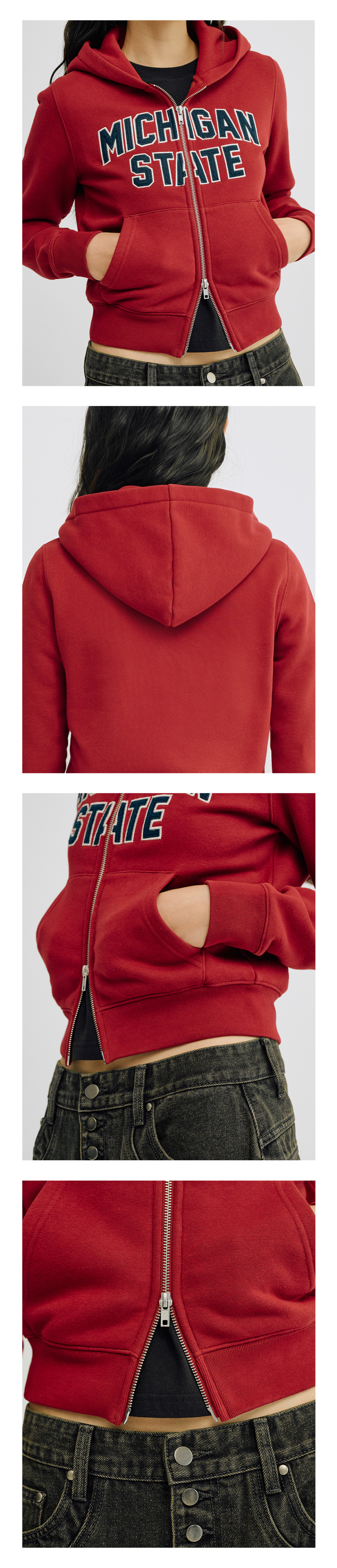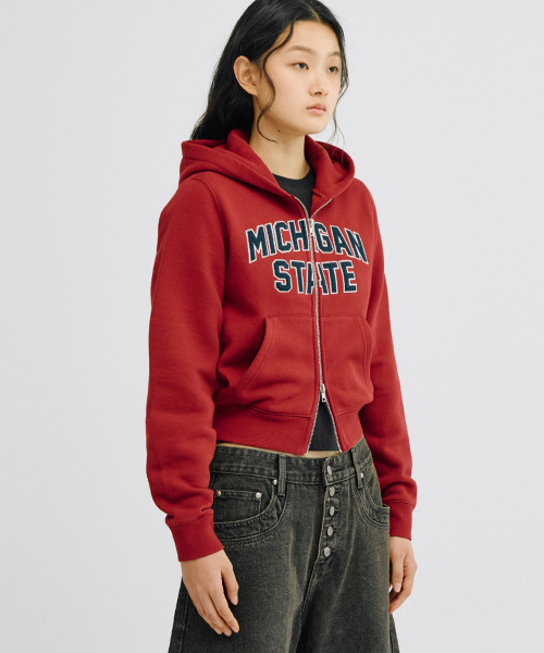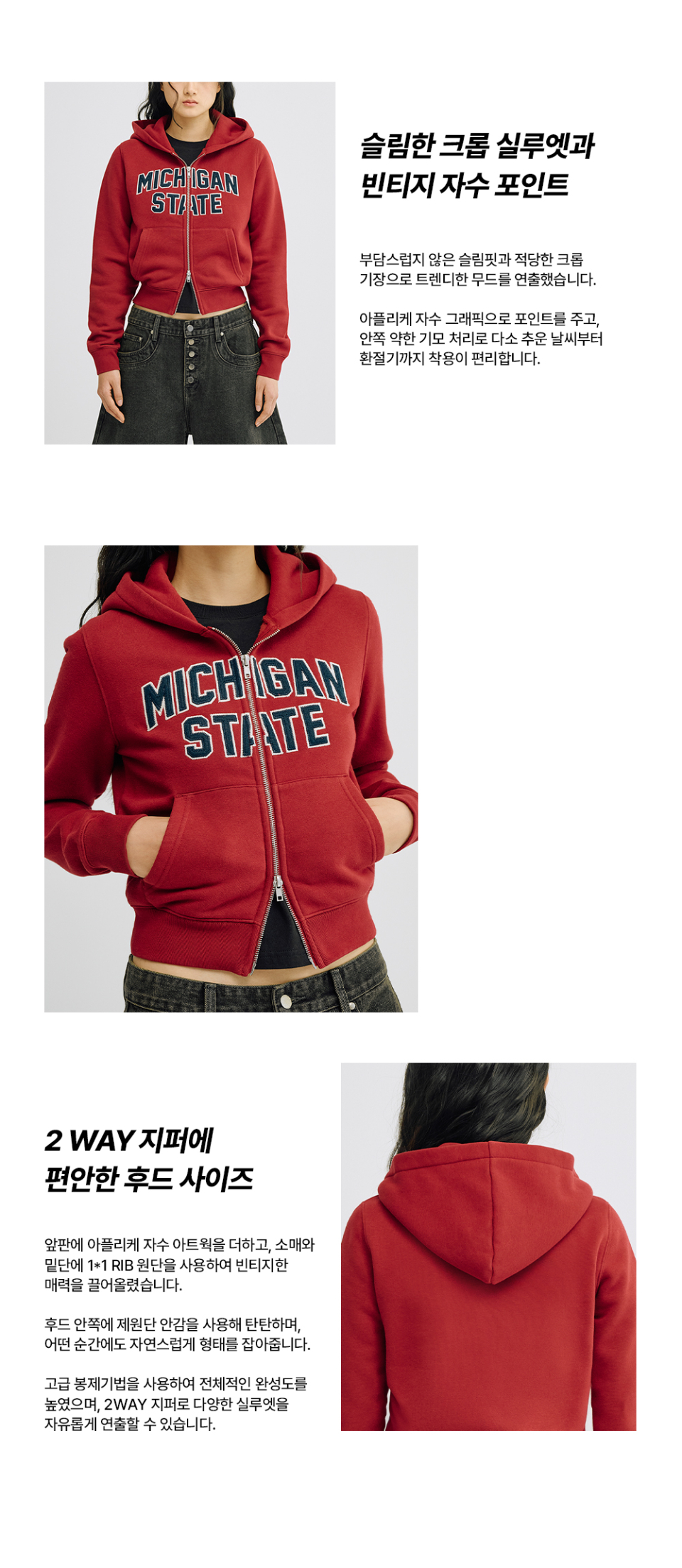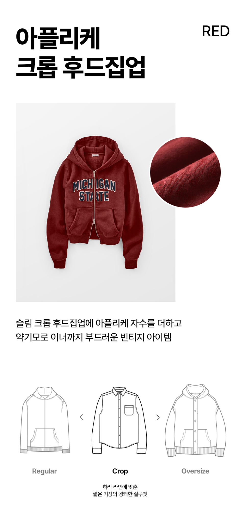 [크롭 티셔츠 추가] (우먼스) 아플리케 크롭 후드집업(레드)
