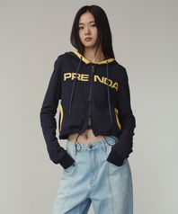 CROP SWEAT STRING HOOD ZIP-UP NAVY