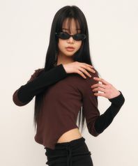 C CUT-OUT WAIST T-SHIRT_BROWN