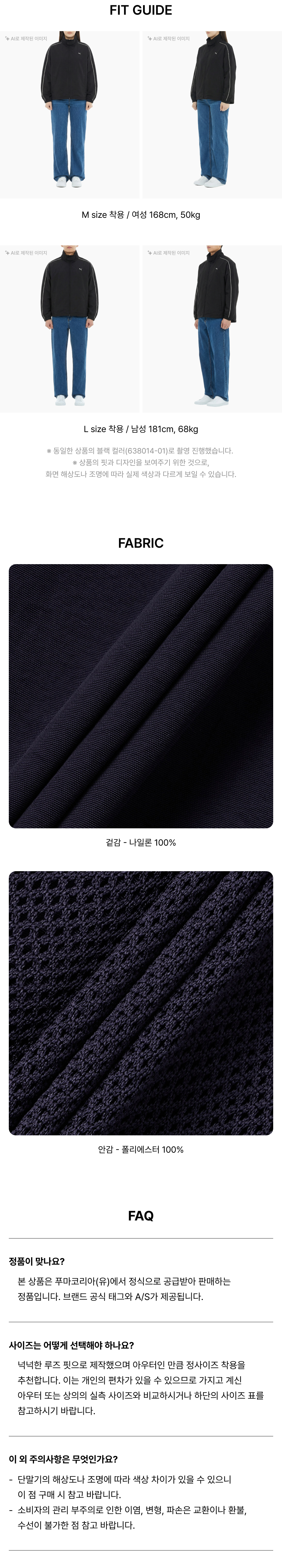 푸마 X 무신사 T7 우븐 자켓 UNI - 블랙 / 638014-01