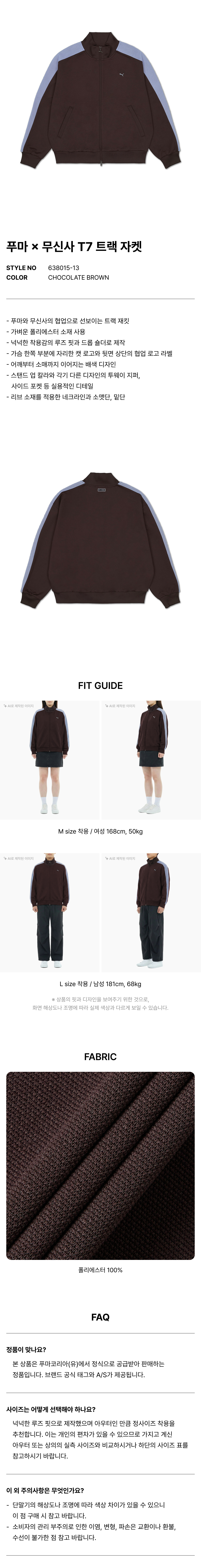 푸마 X 무신사 T7 트랙 자켓 - 초콜렛 브라운 / 638015-13