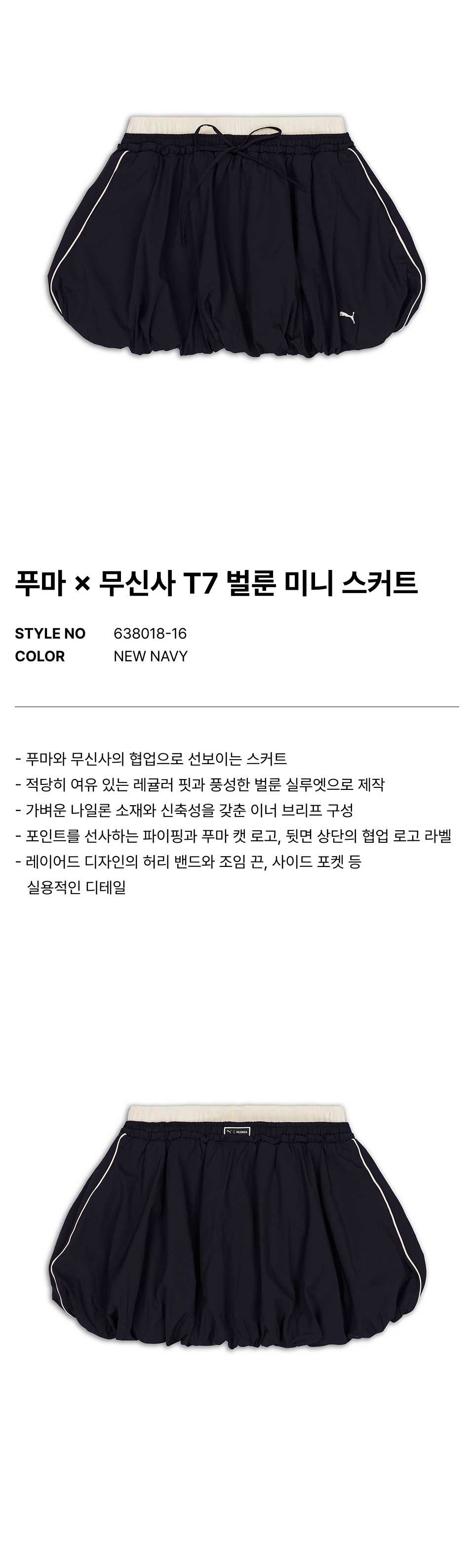 푸마 X 무신사 T7 벌룬 미니 스커트 - 네이비 / 638018-16
