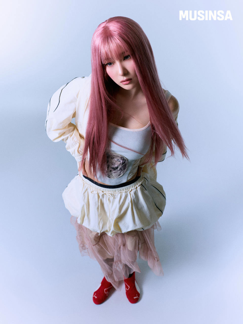 [슬기 착용] 푸마 X 무신사 T7 벌룬 미니 스커트 - 아몬드 / 638018-87
