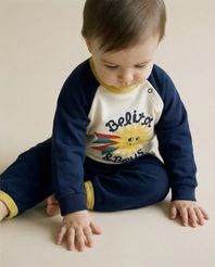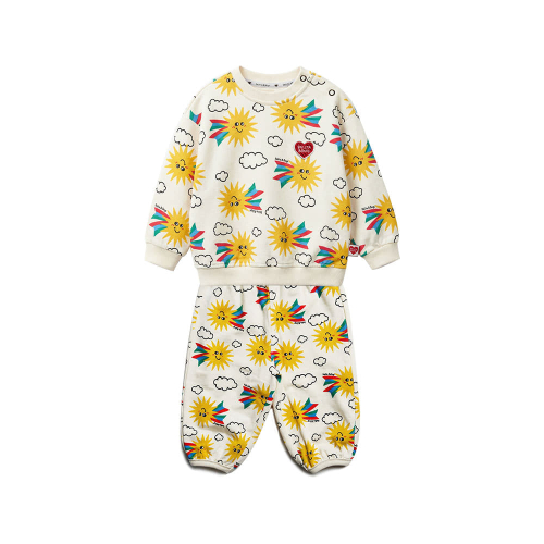 벨리타앤보이즈의 시즌 그래픽인 햇님 프린트가 돋보이는 베이비 상·하의 세트 아이템입니다. 크림 컬러 바탕에 경쾌한 햇님 그래픽을 더해 사랑스럽고 밝은 무드를 담았습니다. 부드러운 터치감과 여유있는 실루엣으로 베이비가 하루 종일 부담 없이 착용할 수 있으며 같은 패턴의 키즈 아이템과 함께 형제·남매룩으로 연출하기 좋은 아이템입니다.