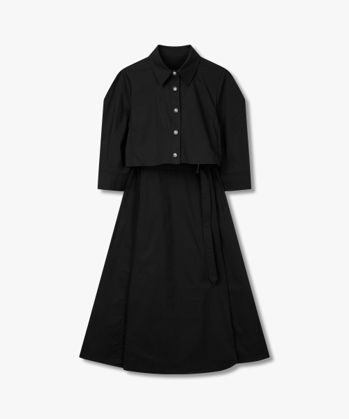 셔츠 레이어드 플레어 원피스_블랙_7224337002