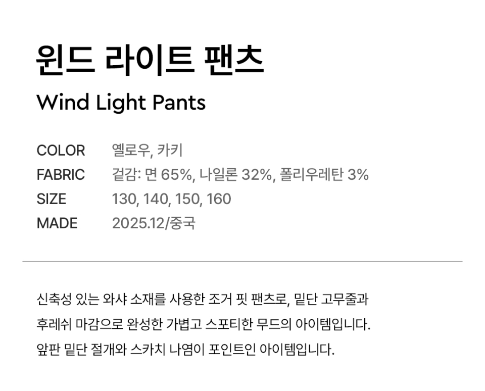 윈드 라이트 팬츠 - 옐로우