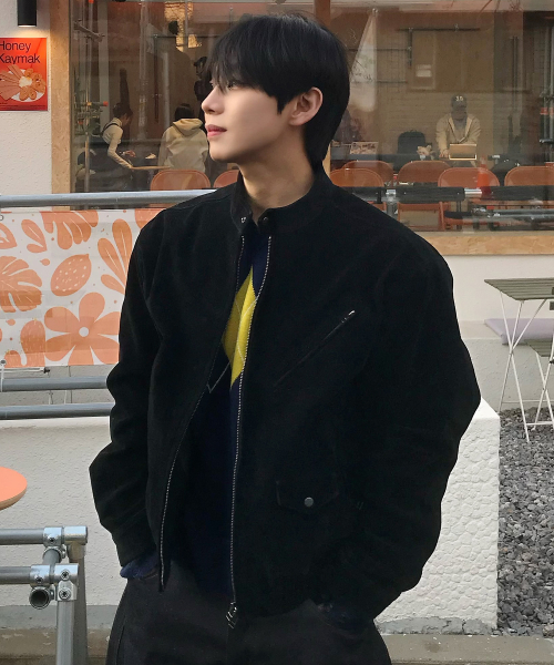 스웨이드 바이커 자켓_블랙