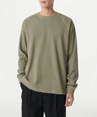 와플 릴렉스드 크루 넥 긴소매 티셔츠 [세이지]