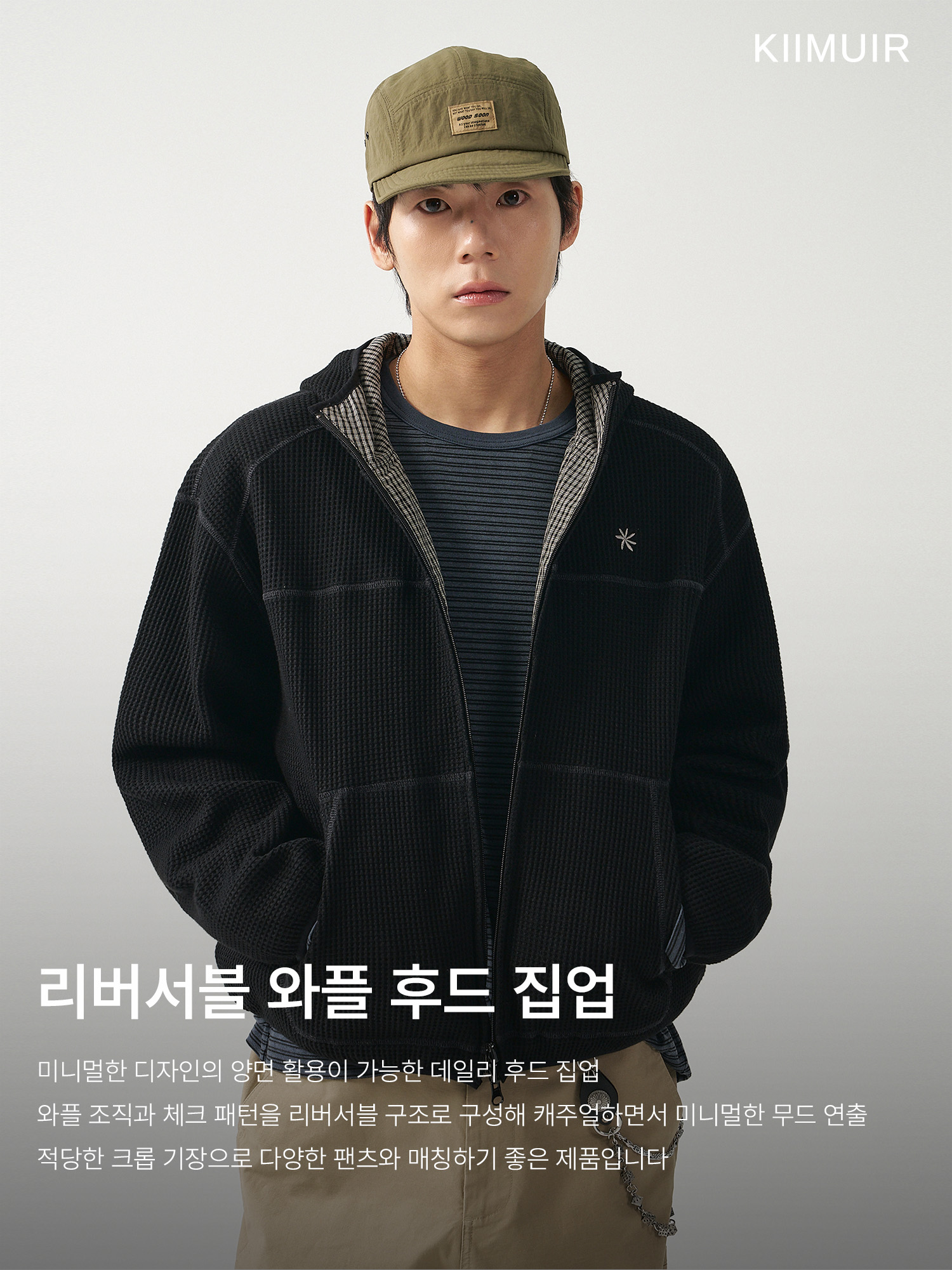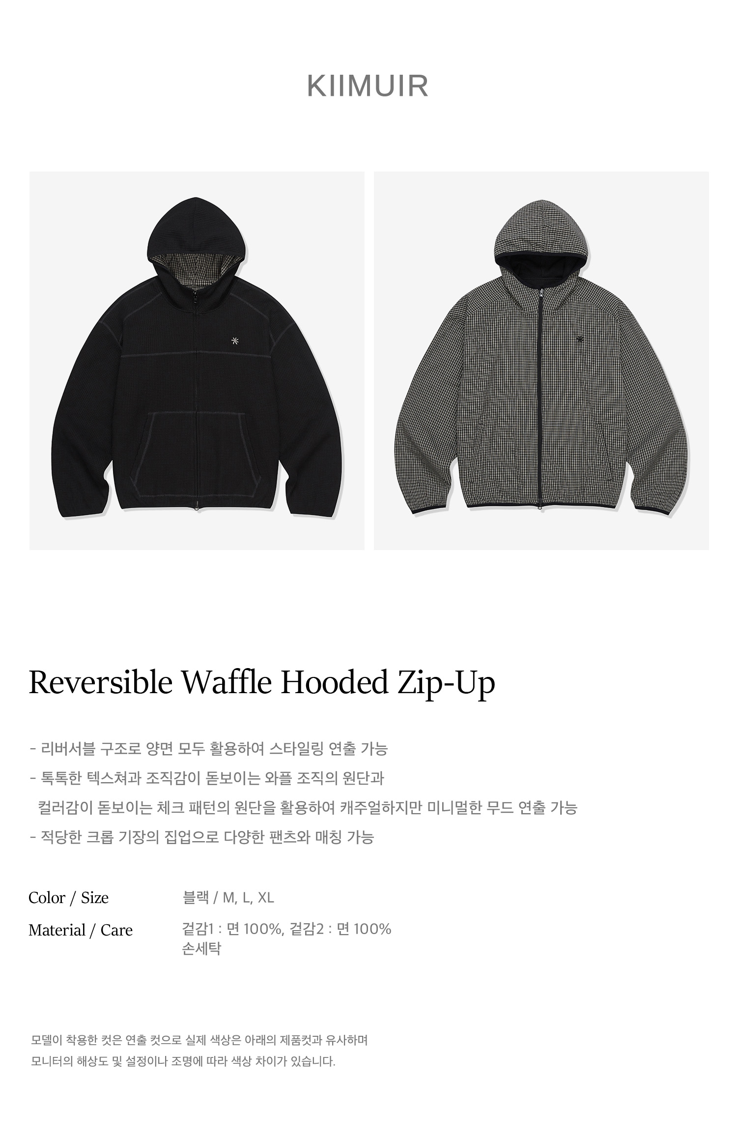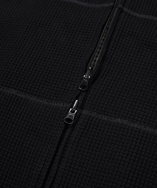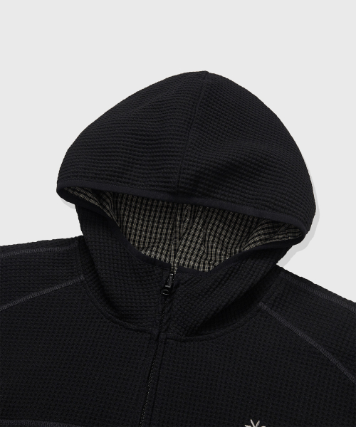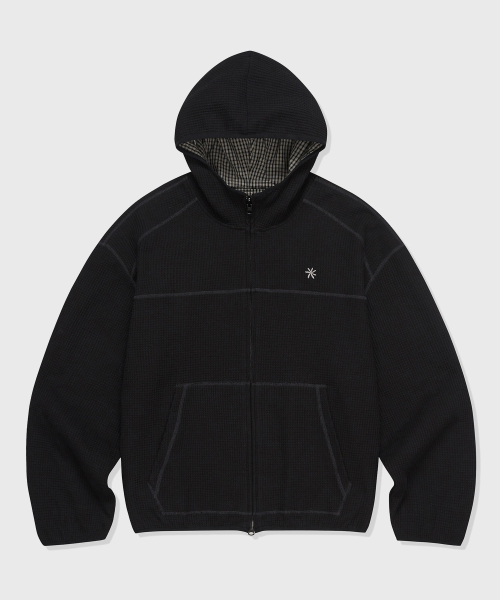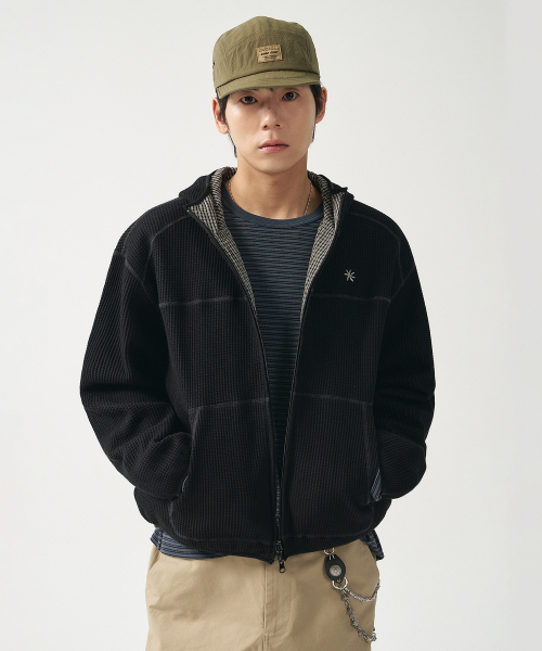 리버서블 와플 후드 집업_블랙