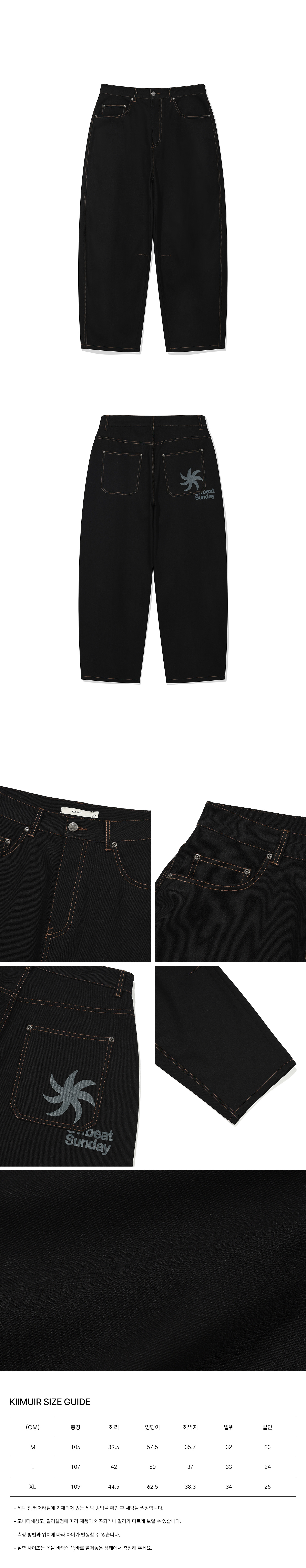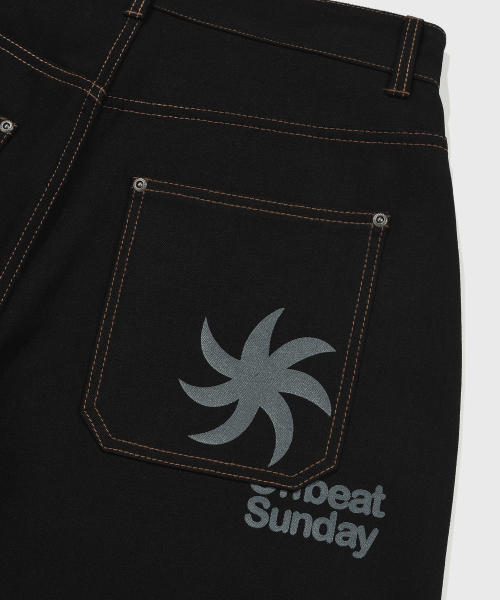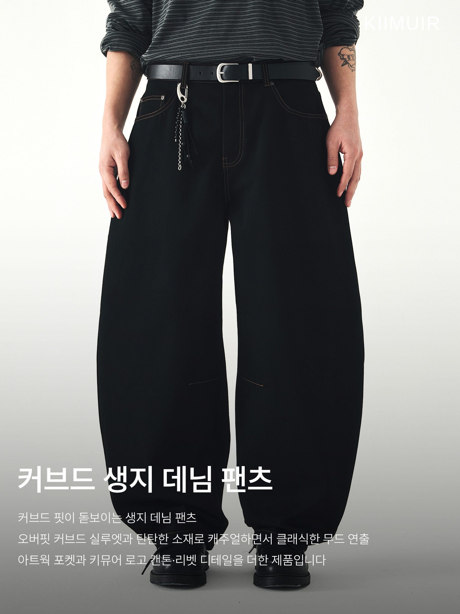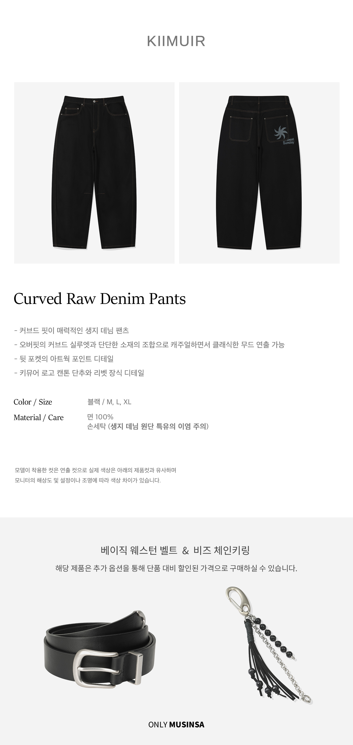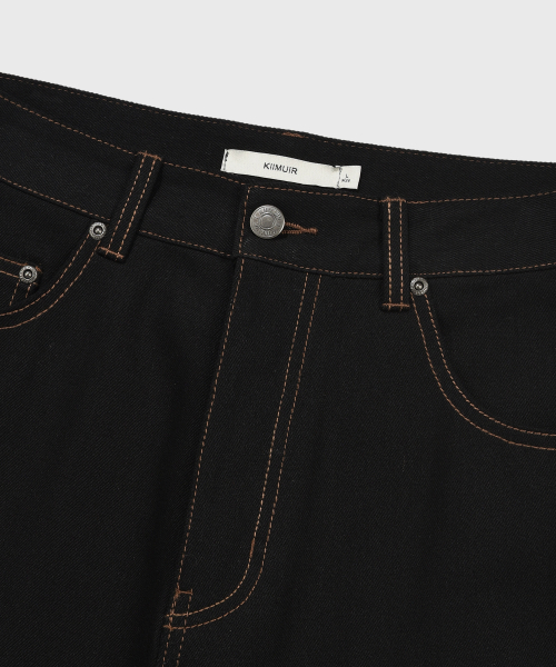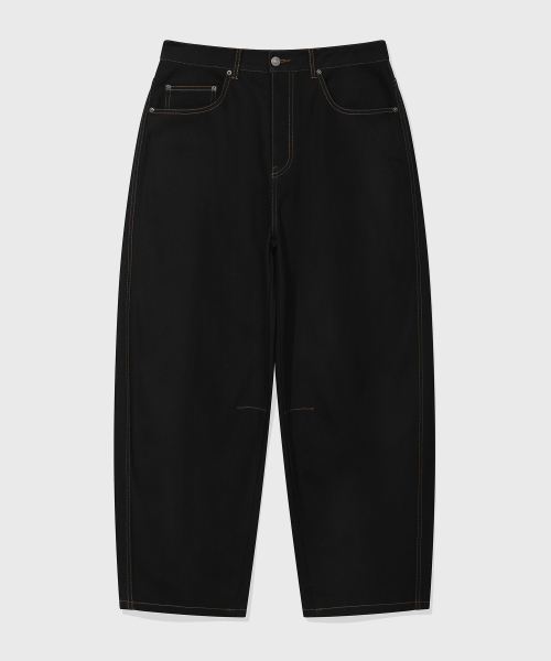 커브드 생지 데님 팬츠_블랙 [벨트/키링 선택]