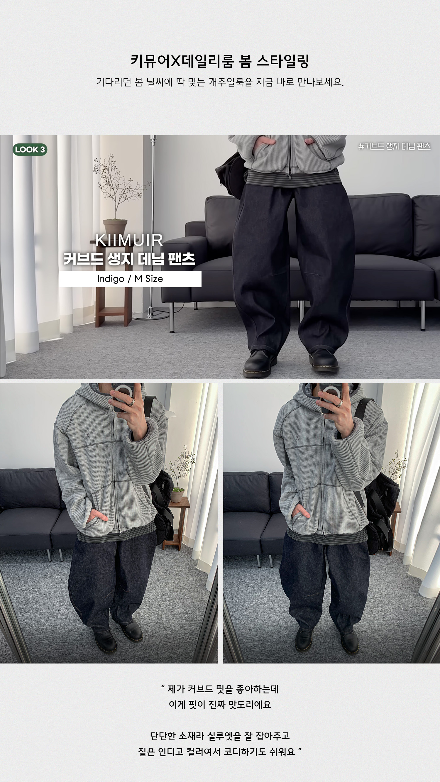 커브드 생지 데님 팬츠_인디고 [벨트/키링 선택]