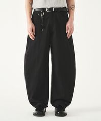 커브드 와이드 코튼 팬츠_블랙 [벨트/키링 선택]