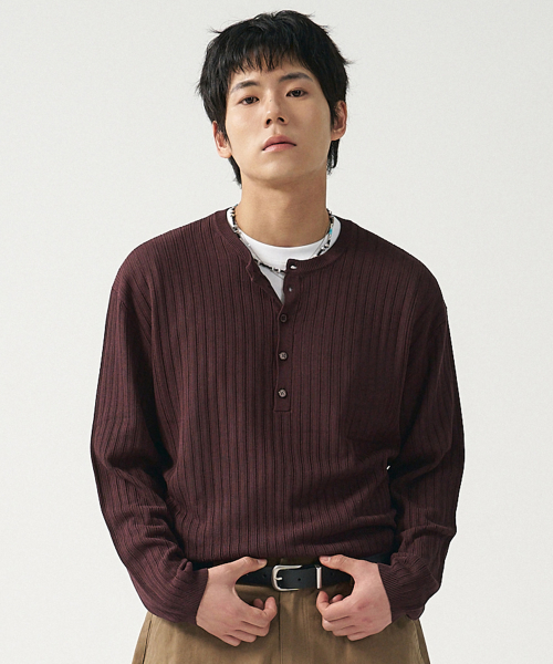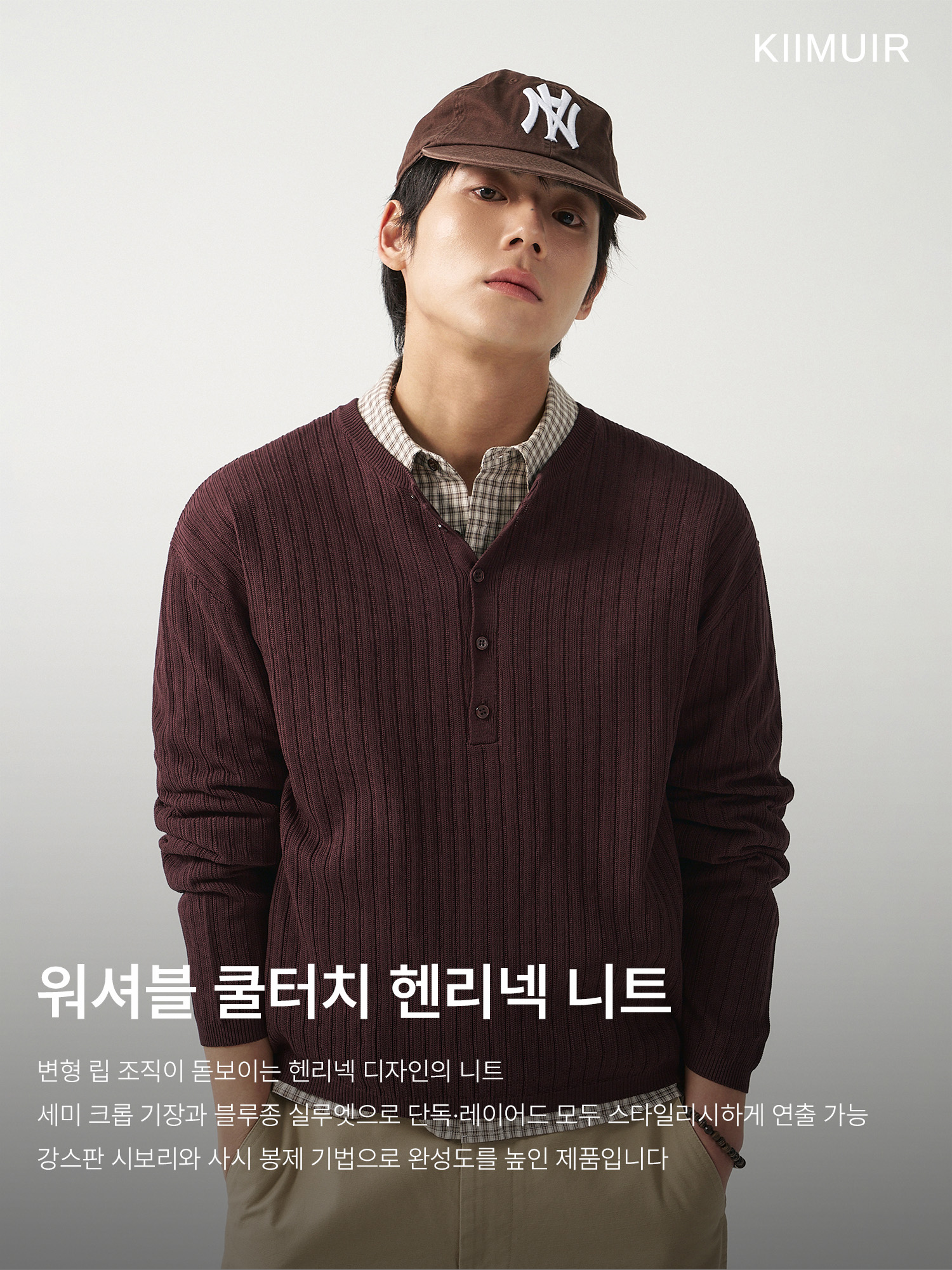 워셔블 쿨터치 헨리넥 크롭 니트_브라운