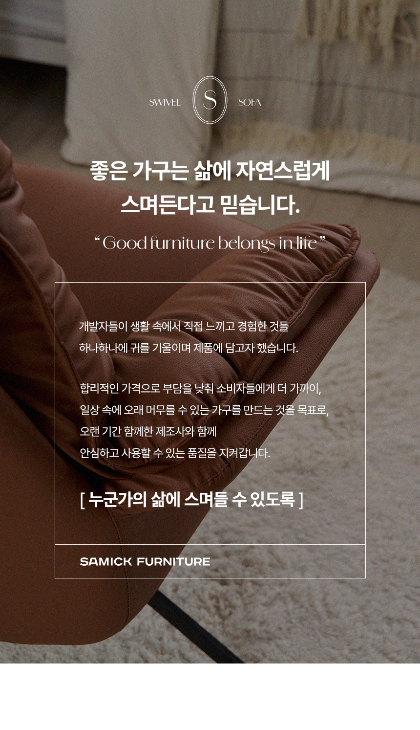 삼익가구(SAMICK)는 라이프스타일에 따른 공간의 가치 향상을 목표로 우수한 품질과 합리적인 가격, 차별화된 배송 시스템으로 고객 가치를 극대화하는 가구 유통 기업입니다.