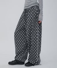 도트 라인 와이드 스트링 팬츠 차콜