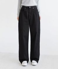 커브드 절개라인 와이드 코튼 팬츠 2Color 블랙 화이트