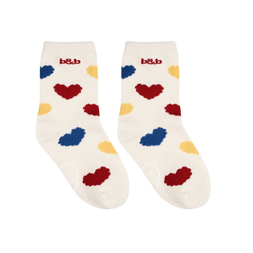크림 컬러의 벨리타앤보이즈 시그니처 버블하트 패턴의 양말 아이템입니다. 레드, 블루, 옐로우 컬러의 하트 패턴이 반복된 양말로 사랑스러운 무드가 가득한 아이템입니다. 발목 부분에는 b&b 로고가 더해져 포인트를 살렸으며, 부드러운 소재로 착용감이 편안합니다. 데일리한 코디에 포인트 아이템으로 활용하기 좋은 양말입니다.