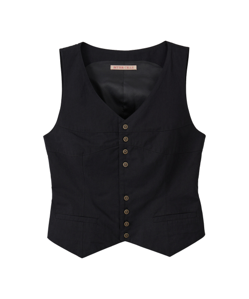 로린 브이 넥 베스트-블랙