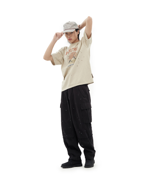 OLD PRINT DEMAGED T-SHIRTS [BEIGE]