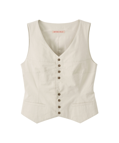 로린 브이 넥 베스트-라이트 베이지