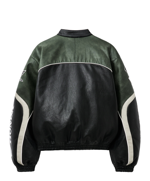 Engineered Leather Racing Jacket Green
