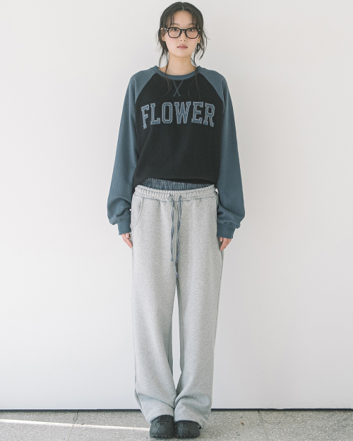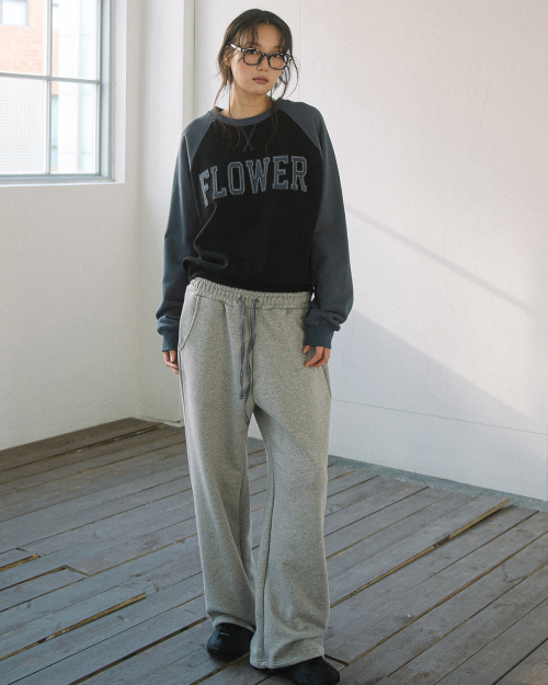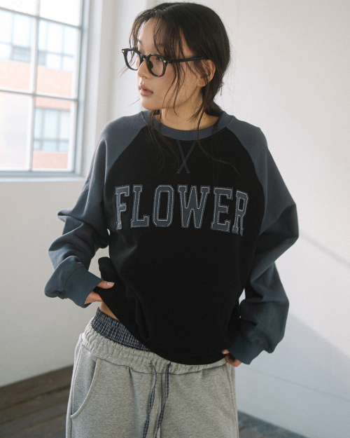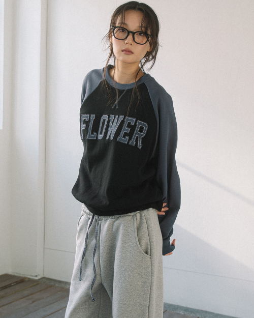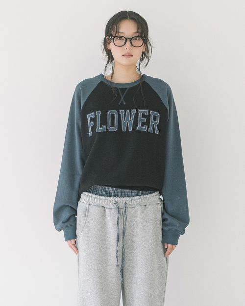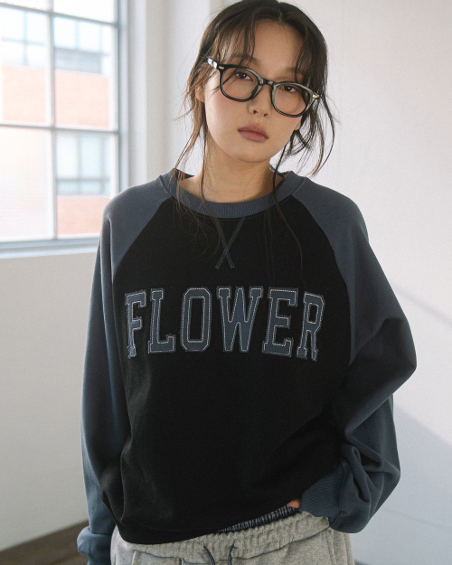 FLOWER APLIQUE RAGLAN SWEATSHIRT(BLACK)