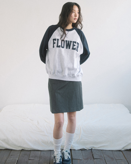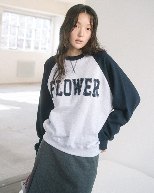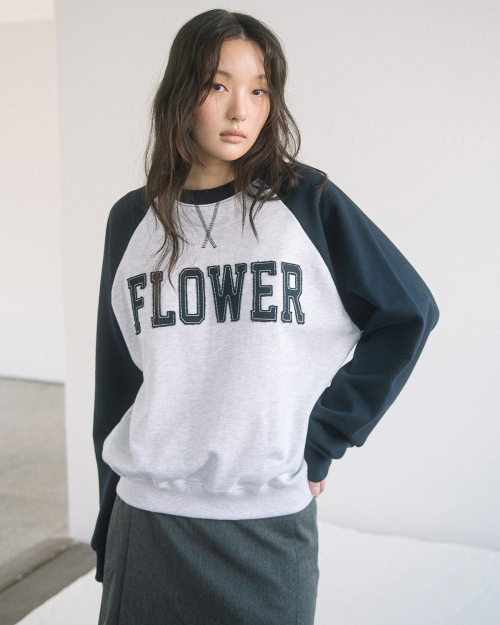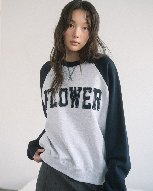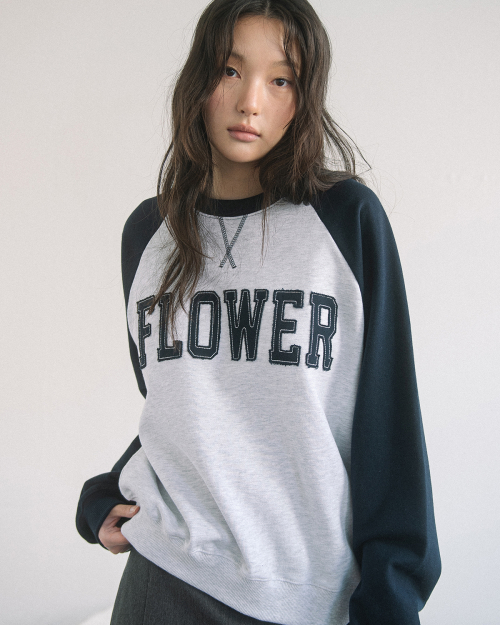 FLOWER APLIQUE RAGLAN SWEATSHIRT(NAVY)