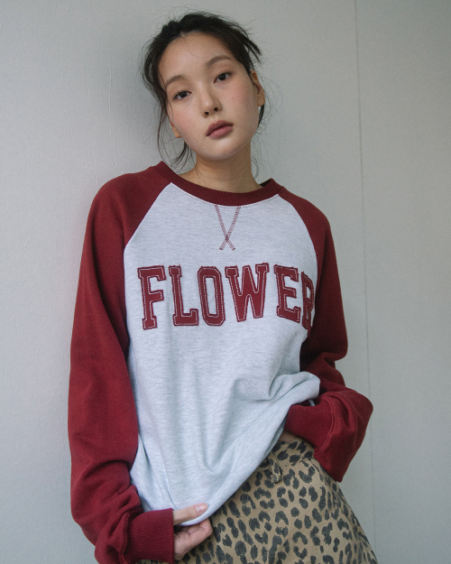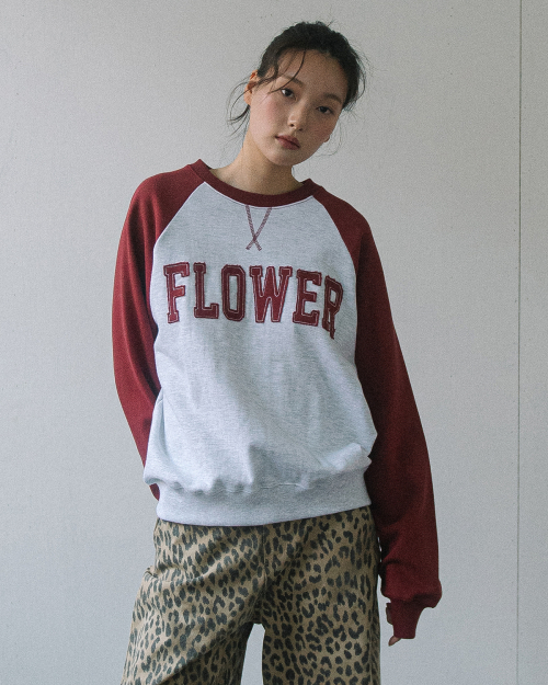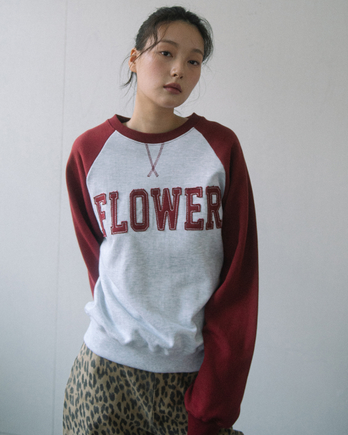 FLOWER APLIQUE RAGLAN SWEATSHIRT(WINE)
