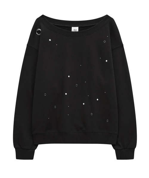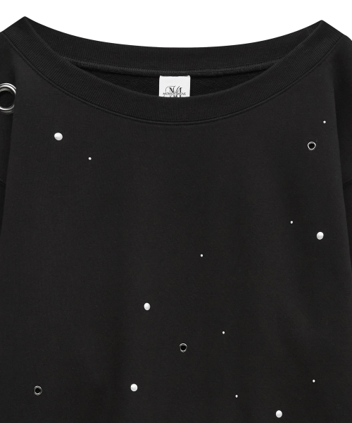 Eyelet Strap Open Sweatshirt [Black]