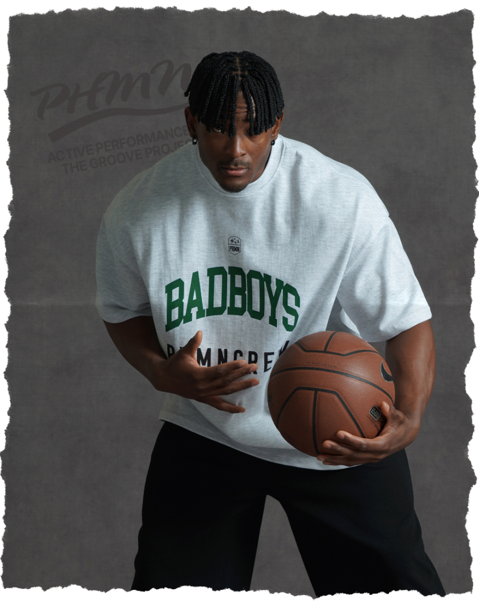 오버핏 배드보이 반팔 티셔츠 -백멜란지