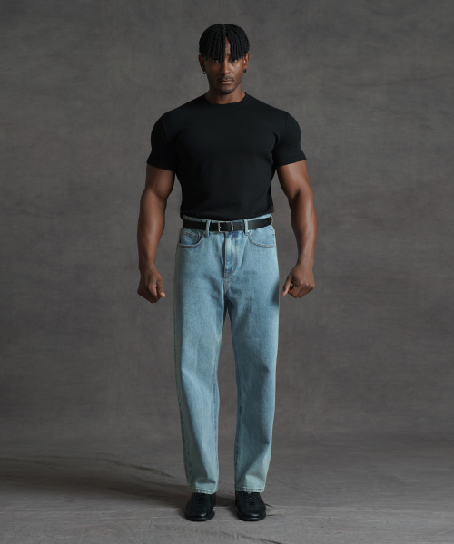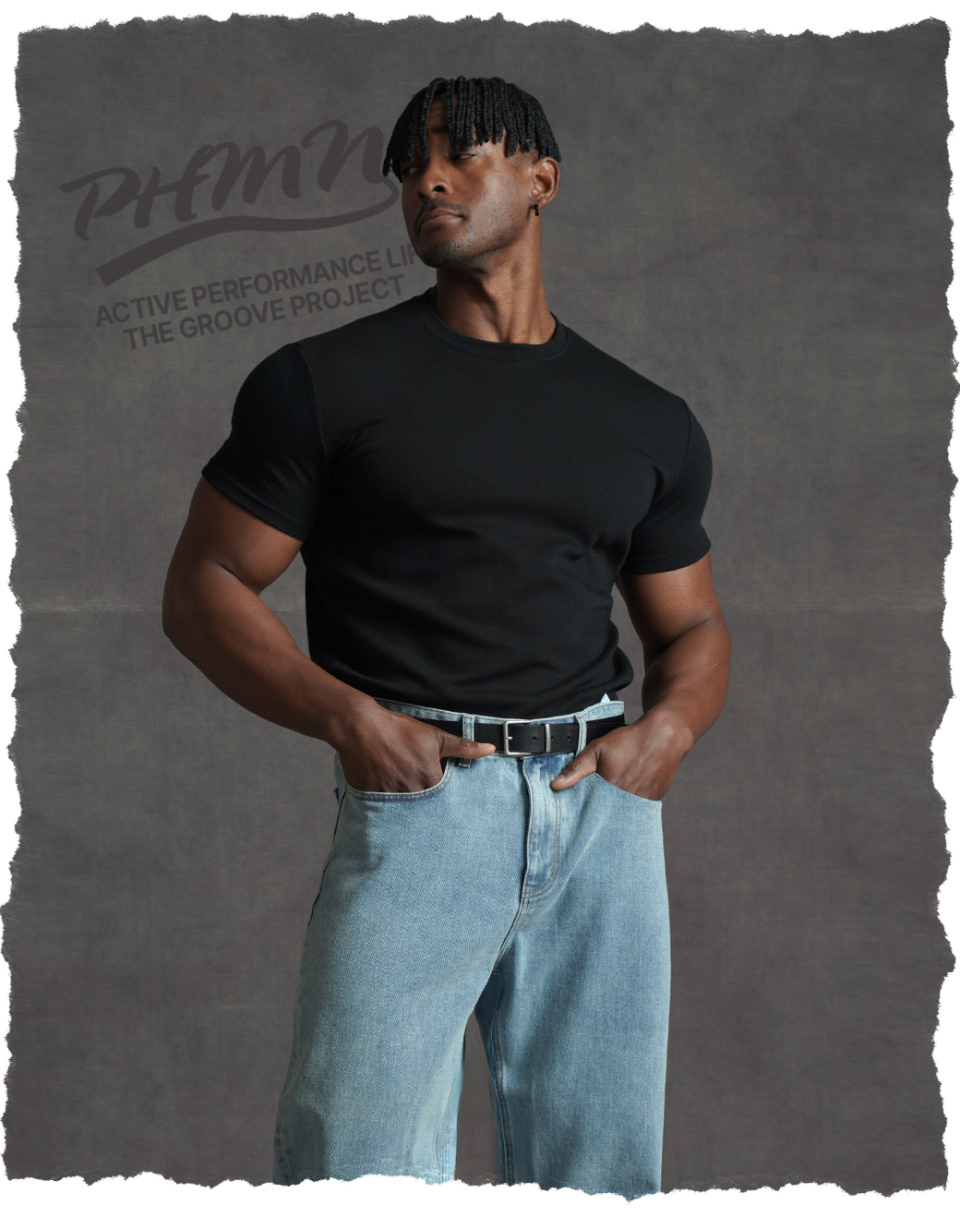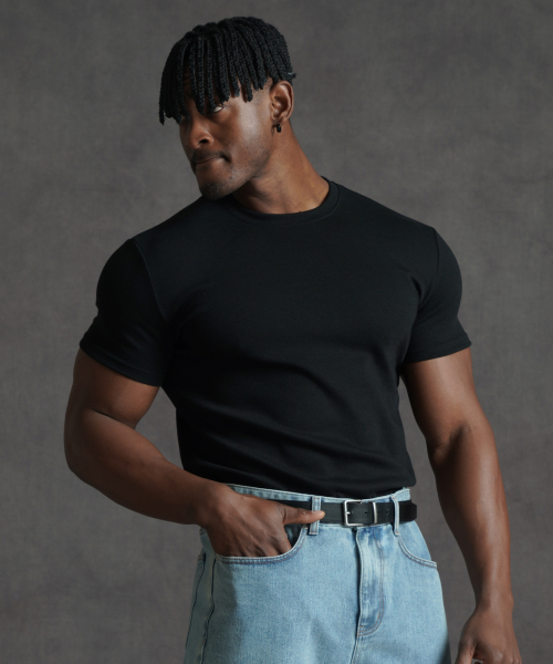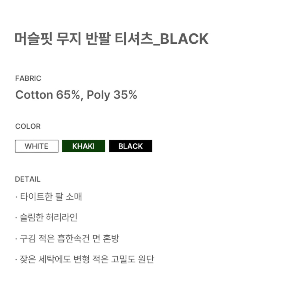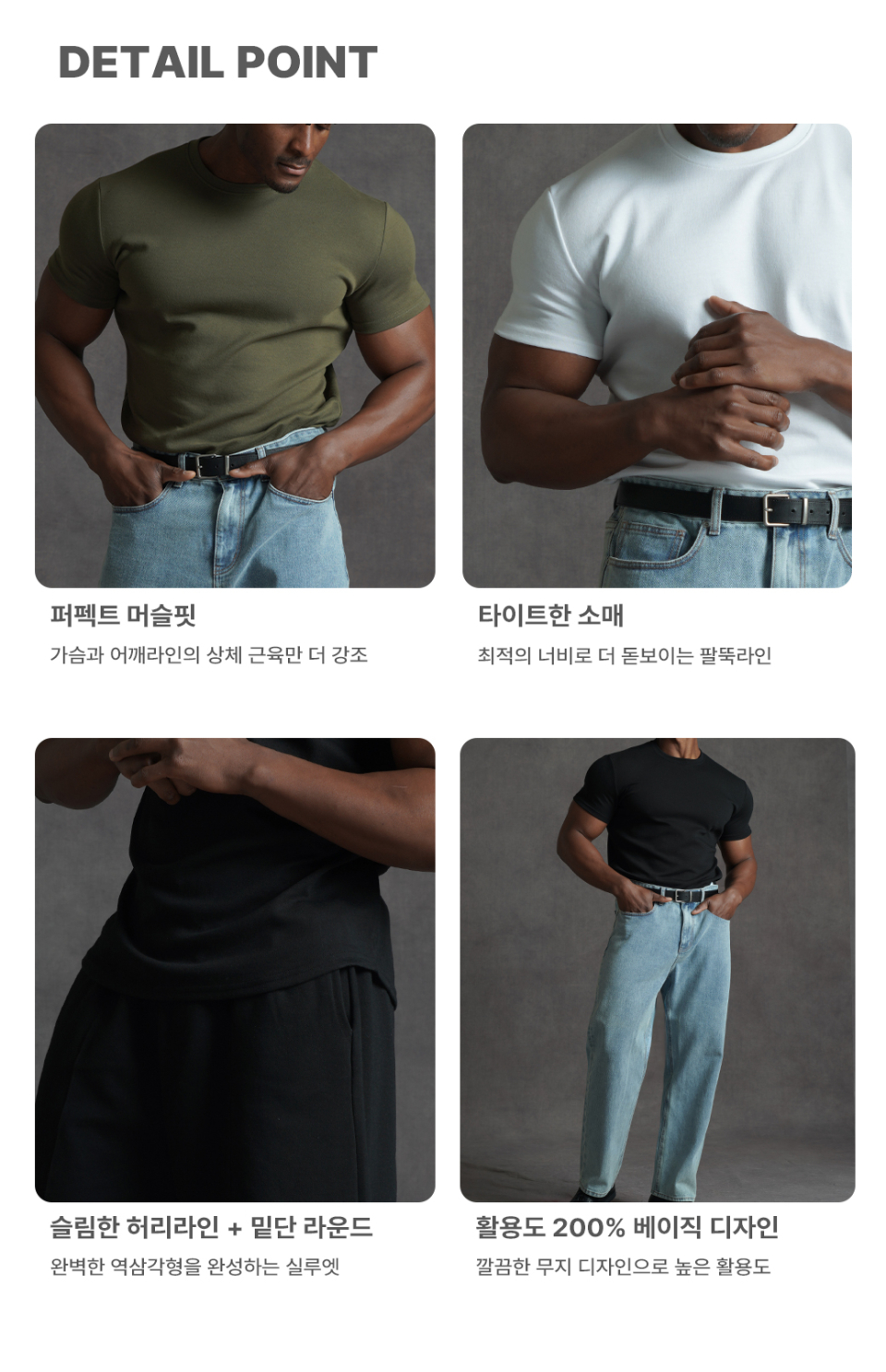 머슬핏 무지 반팔 티셔츠 - 블랙