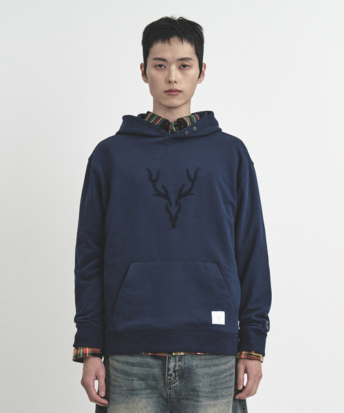 빅 스태그 잔디자수 후드 스웻 네이비