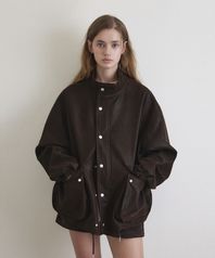 오버핏 필드 숏 레더 자켓_Subtle Brown